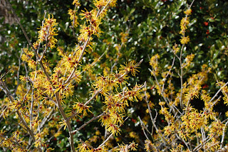 Chinese witchhazel (Hamamelis mollis) are a mid-winter garden delight. Depending on the cultivar, small yellow, orange or red flowers open in early February. Flowers survive many cold nights unharmed over several weeks.