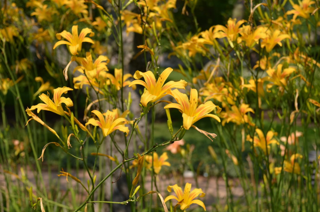 Daylilies thrive with full sun all day long yet bloom satisfactorily with 6 hours of full sun. Clumps tolerate a wide range of soil types and conditions including briefly soggy soil. Altissima daylilies handle short dry spells lasting 10-14 days, but they perform poorly on chronically dry sites.