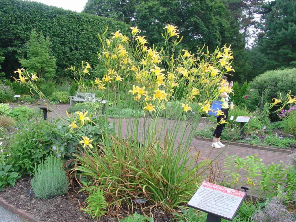 Tall daylilies (Hemerocallis altissima) are a group of late season fragrant daylilies that are native to southwest China, singled out for their tall 5-6 feet floral spikes. Blooms open in late afternoon and are classified as “nocturnal bloomers”. In spring, this deciduous perennial starts out with 2-feet tall grass-like foliage. In summer they produce tall flower spikes 4 – 6 feet tall and 1 – 2 feet wide, adorned with fragrant, pure yellow flowers. Yellow shades of flowers open approximately 4-8 p.m. and remain open thru the next morning. (USDA hardiness zones 3-9).